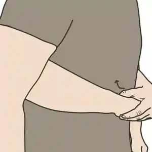 - Hold the injector with the tip against the thigh, midway between the hip and knee.
