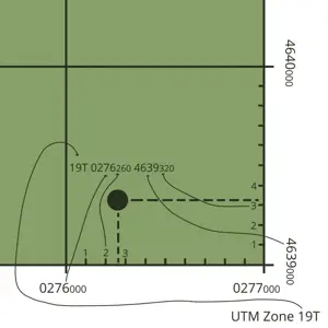 If your map does not have UTM grid lines, you can still follow the same approach using the coordinate values on the sides of the map. Some systems may use decimal places instead.